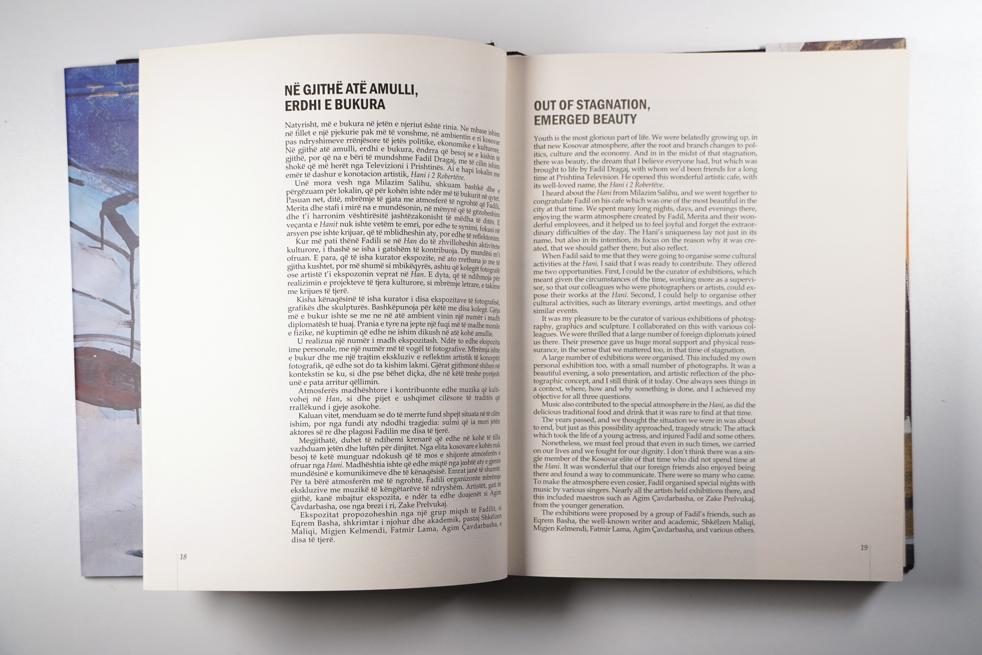 Hani i 2 Robertëve is a café, art gallery and cultural hub in Prishtina. Founded in 1989, the space became a center of parallel cultural and political life in Kosovo during the 1990s; it was first located in the Kurrizi neighborhood and later moved to Santeja. Initiated by Merita and Fadil Dragaj, the space evolved into an urban cultural haven, attracting not only artists but also intellectuals, activists and journalists. This publication traces its history, drawing on archival materials, testimonies and interviews.