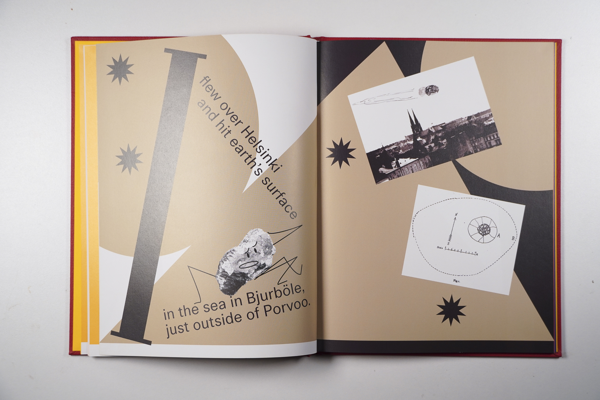 Part children’s book, part exhibition catalog, “Fake Star” follows a plaster copy of a meteorite displayed in the Finnish pavilion of the Paris World Exposition in 1900. Exploring the backdrop of the exhibition, the book touches on the emerging nation-state of Finland and the colonialist logic of the World Fairs. It is a story, aimed at children and adults alike, that narrates the encounter between King Oscar II of Sweden and the Russian representative at the Finnish pavilion, Prince Tenisheff.