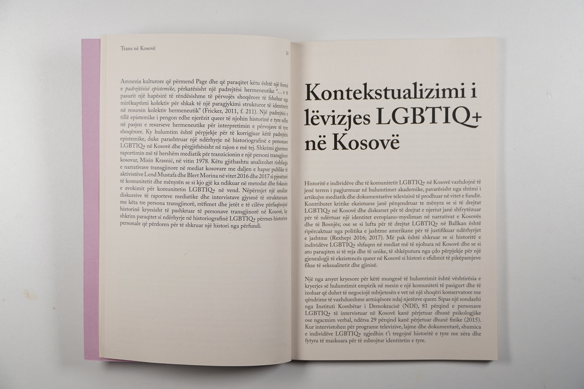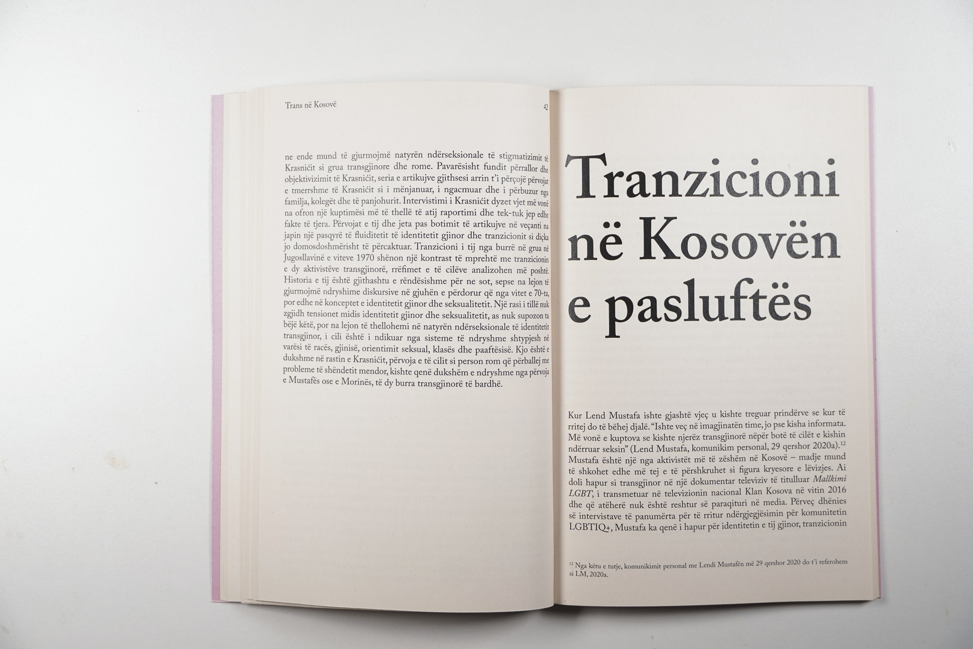 Në “Trans në Kosovë: Një histori e pa kryer”, Lura Limani rrëfen historinë e Misin Krasniqit, rasti i parë i dokumentuar i tranzicionit gjinor në mediat kosovare (1978). Libri paraqet një historiografi të personave LGBTIQ+ në Kosovë dhe rajon, duke synuar t’i korrigjojë padrejtësinë epistemike të mos-njohjes. Limani analizon gjithashtu rishifaqjen e narrativave transgjinore në Kosovë pas daljes publike të aktivistëve Lend Mustafa dhe Blert Morina në 2016 dhe 2017 dhe shtjellon se si këto ngjarje kanë ndikuar në metodat dhe fokusin e avokimit LGBTIQ+.